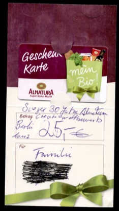 Ein männlicher Savant bekam von Juragins für einen Anfragenden die Test-Aufgabe als logisches Beispiel, in Berlin, die Aktion der Supermarkt-Kette: Alnatura, "30 Jahre Alnatura" für ein 25€-Einkaufsgutschein eines Markts zu gewinnen. Eine kreative Lösung war hierbei von Nöten, ganz klar.